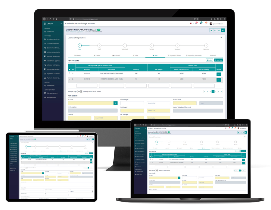 Cambodia National Single Window is one of the system under CamelONE™ platform. The platform is an system that connects a wide range of government agencies, traders, and customs.